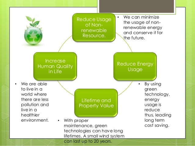 Green technology also green tech. Green products are by definition environmentally friendly. Overall green tech concentrates on sustainable innovation which factors in short-term and long-term environmental effects.